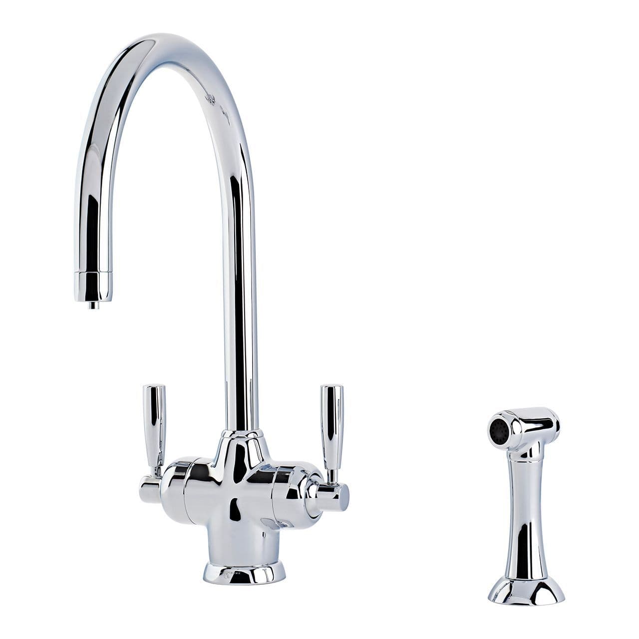 The 1535 Perrin & Rowe Mimas Sink Mixer Tap with Filtration, Rinse and C Spout is available in Chrome, Nickel, Pewter and a range of special finishes including Gold, Bronze and Brass finishes.