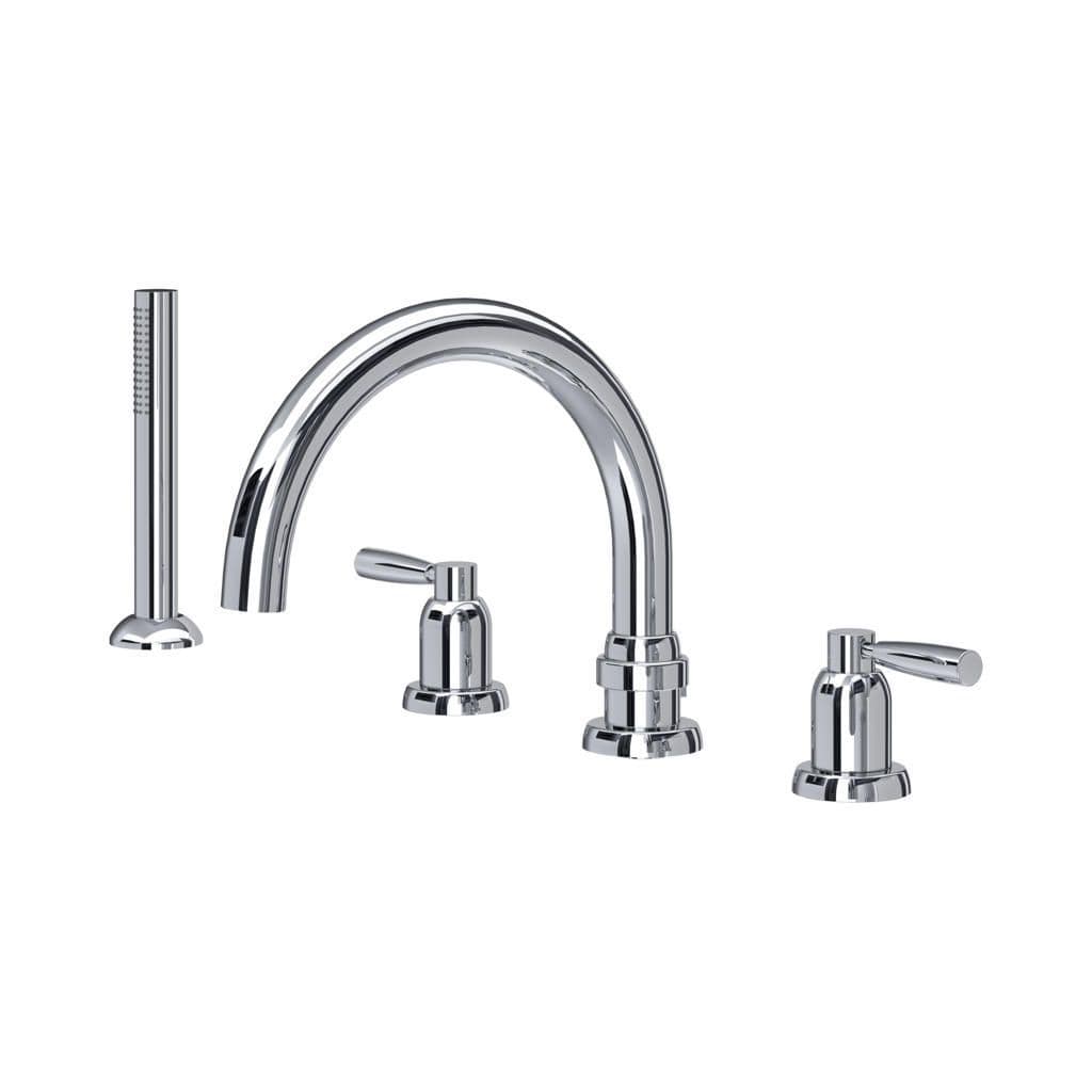3975 Perrin & Rowe Langbourn Deck Mounted Four Hole Tubular Bath Set with Handshower - Lever